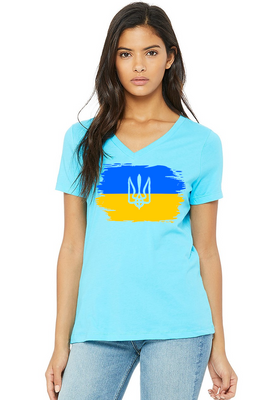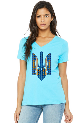 Ladies' t-shirts adorned with traditional Ukrainian designs applied in different decoration techniques: embroidery, digital print, htv including glitter and metallic transfers. Embrace the beauty and heritage of Ukraine with our unique selection of high-quality t-shirts. Showcase your national pride and support for Ukraine at this difficult time of war waged again by #terroristrussia.