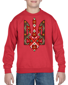 Warm and comfortable sweatshirt for kids with a Tryzub (Trident) design on a front.